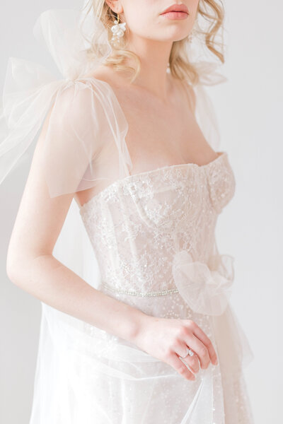 In the grand scheme of wedding planning, ask yourself how important your dress is to you. If it ranks very high on your list of priorities, allocate a larger portion of your overall wedding budget to your dress. If a loved one is helping to pay for your gown, talk about and agree on a budget you’re both comfortable with well before your bridal appointment. Be sure to share this number with your bridal consultant too! Many bridal boutiques offer general pricing information on their website so do a little research beforehand to determine whether or not the shop is a good fit for your taste and your budget. As difficult as it can be, avoid trying on gowns that are beyond your budget. Falling in love with something that’s priced well outside of your financial comfort zone can feel extremely uncomfortable and discouraging.